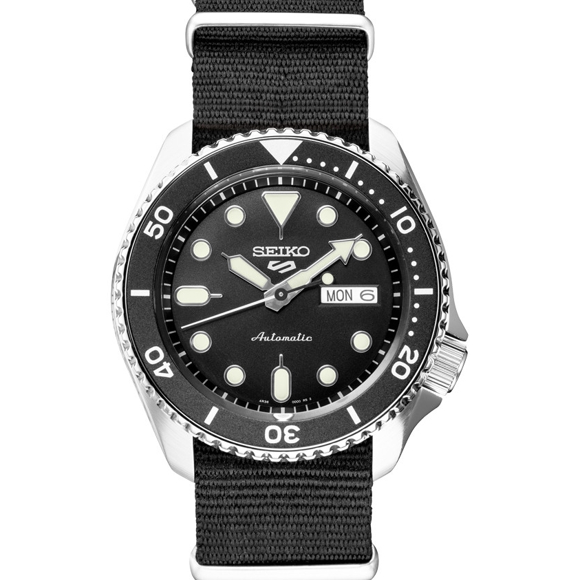 Show your style. Make your move. For over 50 years, Seiko 5 Sports has delivered consistently high levels of reliability, durability, and performance. For dependable timekeeping in your everyday life, this exceptional watch is powered by an automatic movement with a power reserve of approximately 41 hours and features a day/date calendar, LumiBrite hands and markers, and a see-through caseback. With a stainless steel case, black NATO nylon strap and a black dial framed by a black rotating bezel, this versatile watch is 100 meter water resistant- perfect for your style no matter what your day has in store.