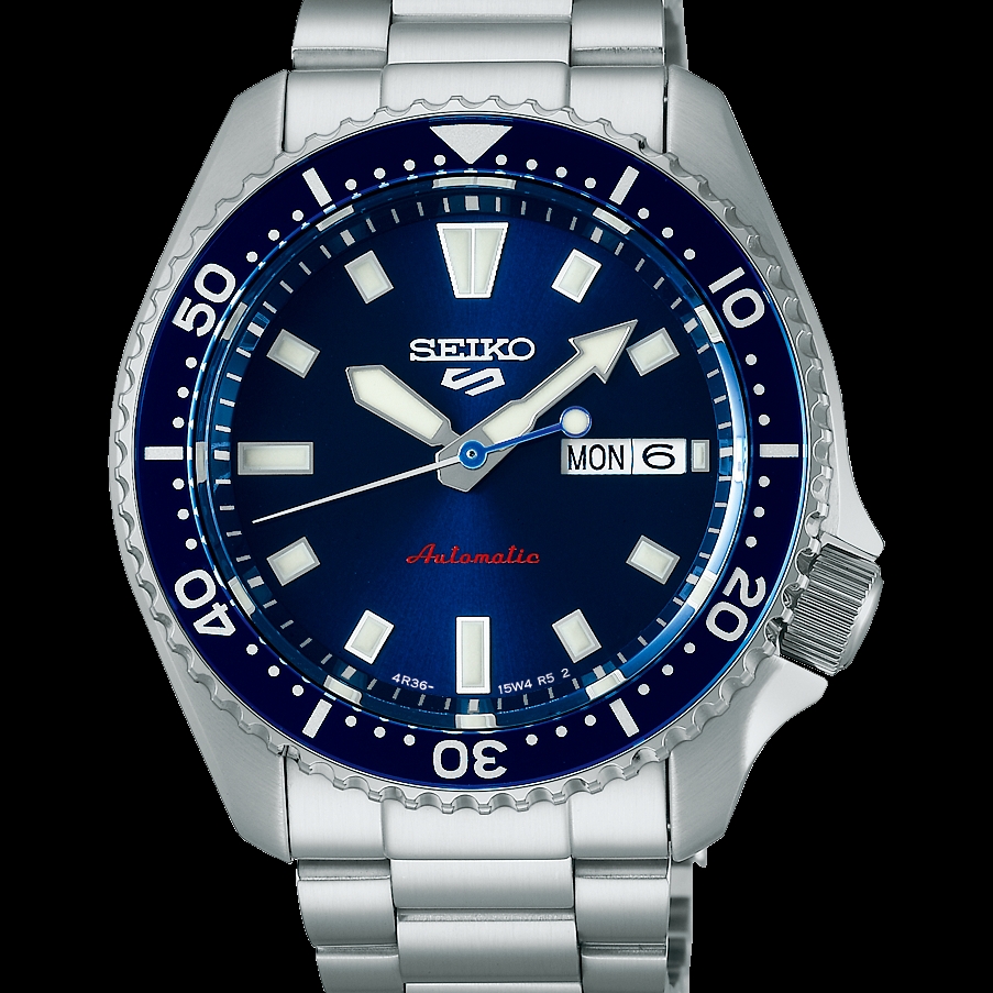 Show your style. Make your move. Since the 1960s, Seiko 5 Sports has delivered consistently high levels of reliability, durability, and performance. Paying homage to Seiko’s iconic SKX models of the past, this creation inherits the layout of the original, featuring indexes with a rich texture and hands with a distinct, yet refined design. For dependable timekeeping in your everyday life, this exceptional watch is powered by an automatic movement with a power reserve of approximately 41 hours and is equipped with a day/date calendar, LumiBrite hands and markers, and a see-through caseback. Crafted of stainless steel, this versatile timepiece displays a deep blue dial framed by a coordinating rotating bezel with a glossy Hardlex insert for a sophisticated feel. Water resistant to 100 meters, the Seiko 5 Sports collection is perfect for your style no matter what your day has in store.